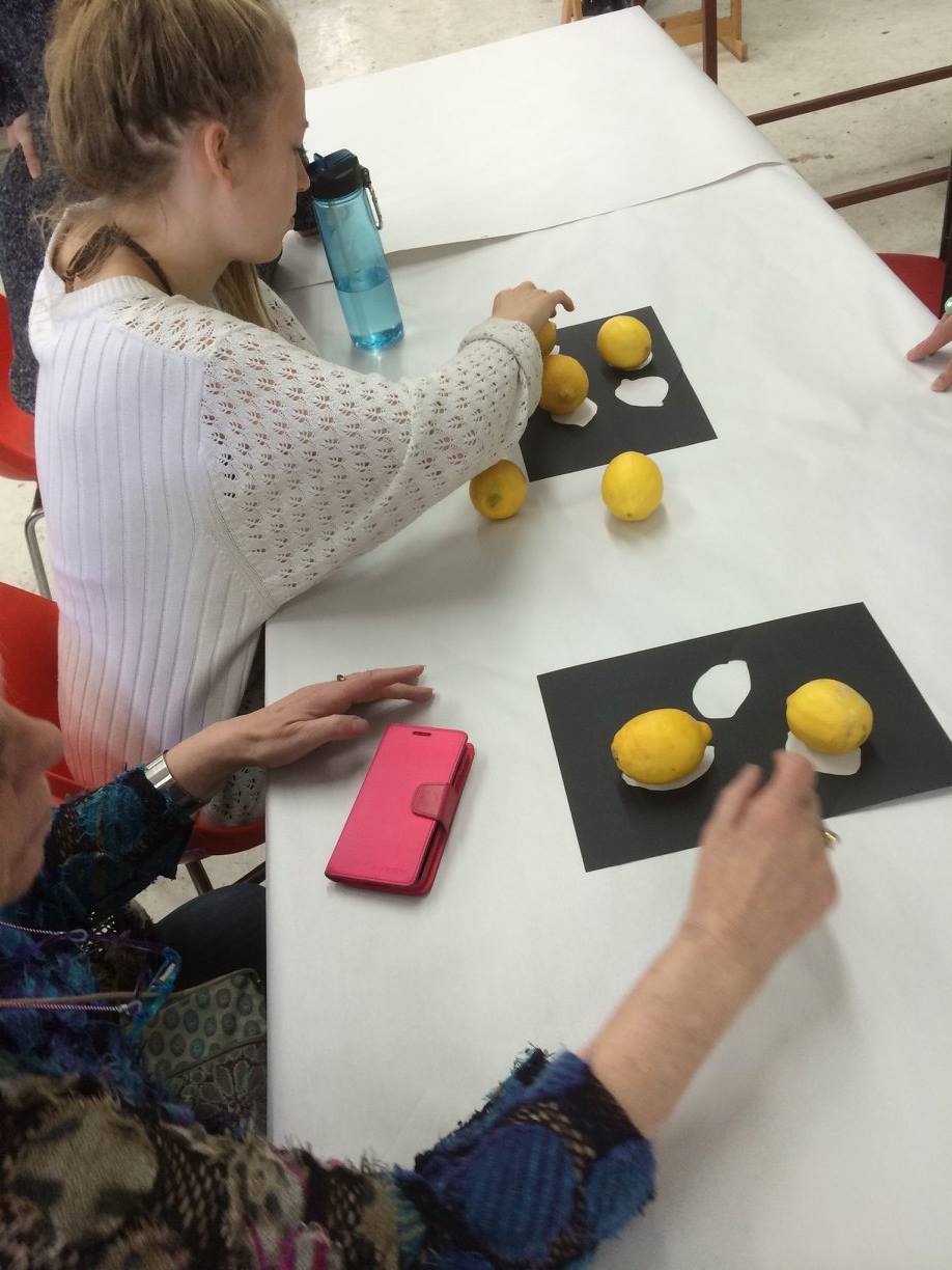 Allowing the participants to move the lemons around and create their own compositions projects onto the walls, we looked at how their relative shapes shift our ideas.